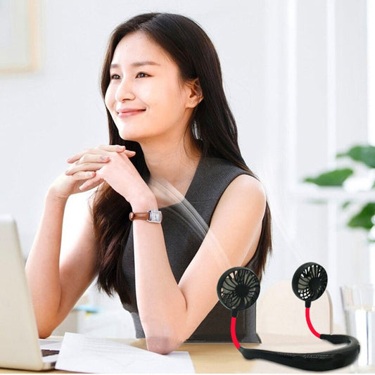 Hand Free Sports Dual Fan Portable Neck Band Hanging USB Battery Rechargeable Mini Cooler Fan